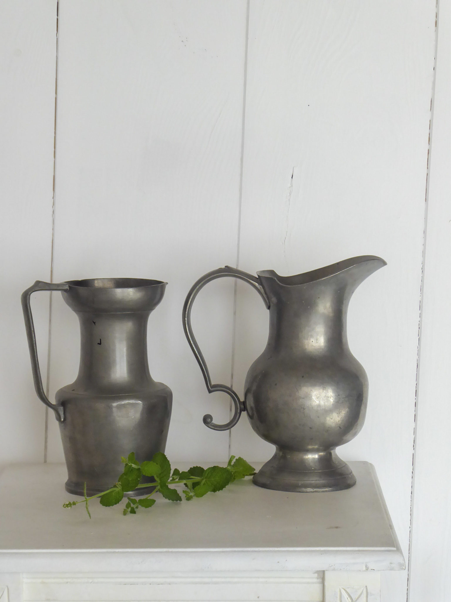 – lot de 2 grands brocs en étain de hauteur 20 cm et diamètre 9 cm